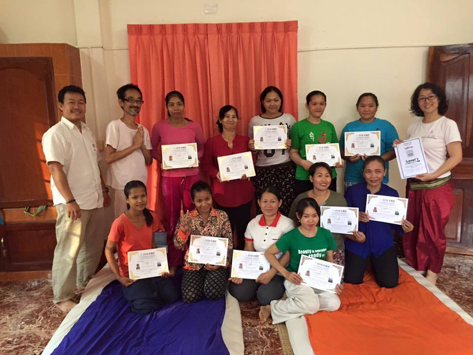 2017年タイ・チェンマイのマッサージ学校のティプロマをもらいとても喜んでいるセラピスト達