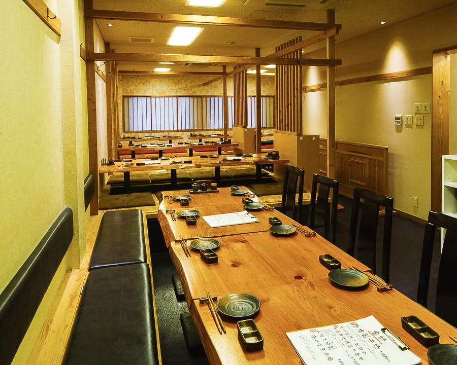 2F大型宴会にぴったりな2Fフロア。各個室のふすまをすべて取り外すと、30名様~60名様までの広々とした貸切フロアとしてご利用可能に!