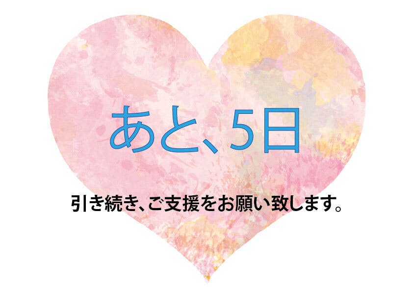クラウドファンディングでのご支援のお願いも、あと5日となりました。