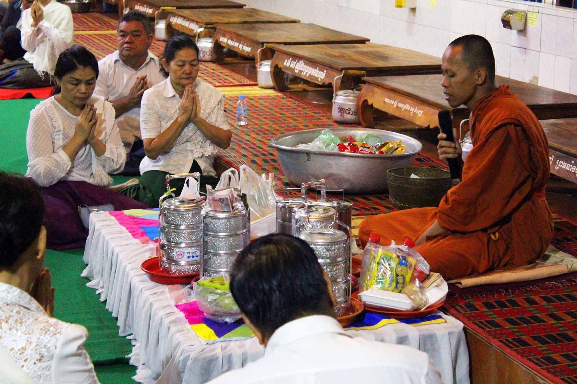 カンボジアでは毎朝、お寺に食べものを集めます。