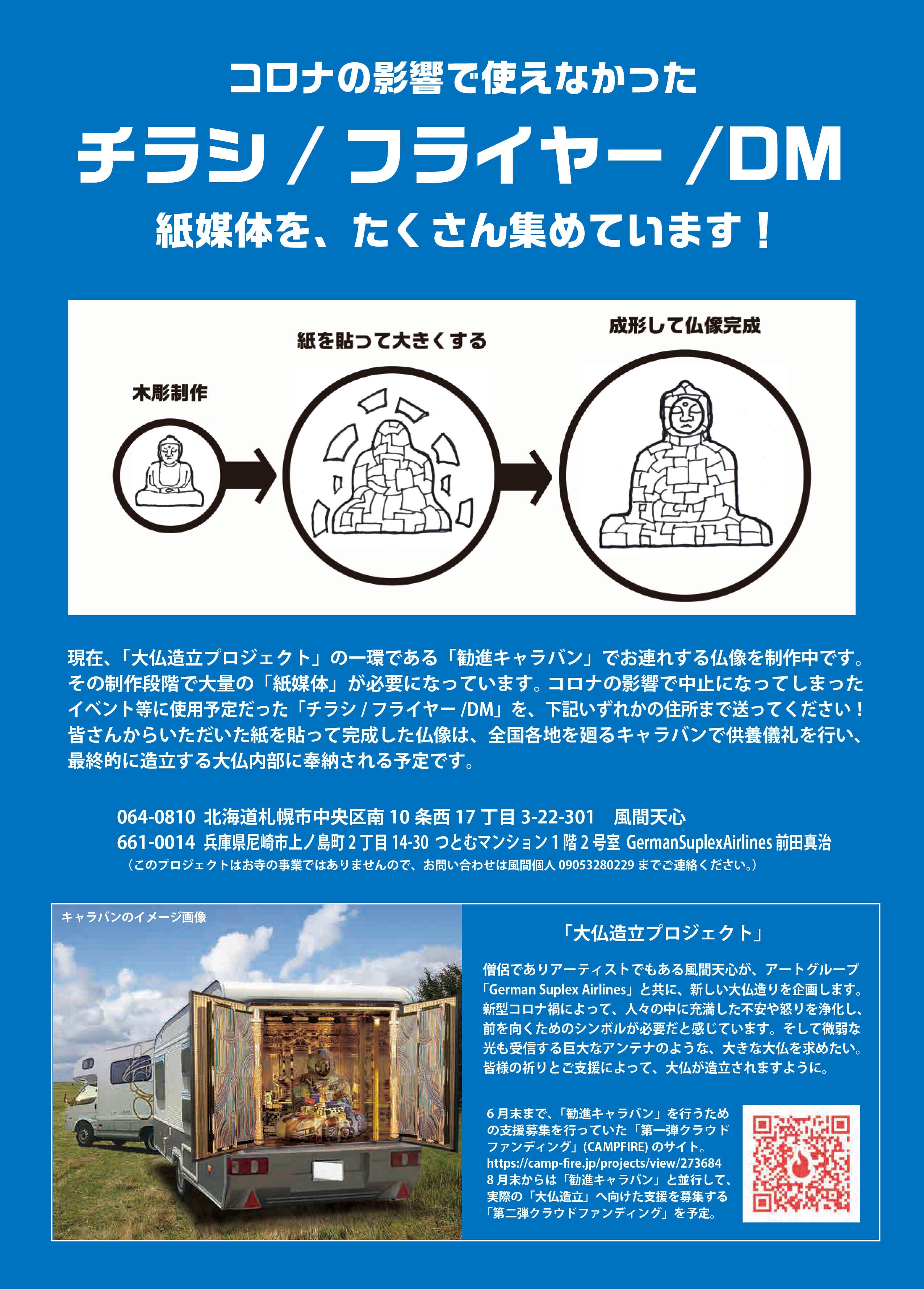 ② キャラバンにお連れする仏像制作のため、紙媒体の募集。