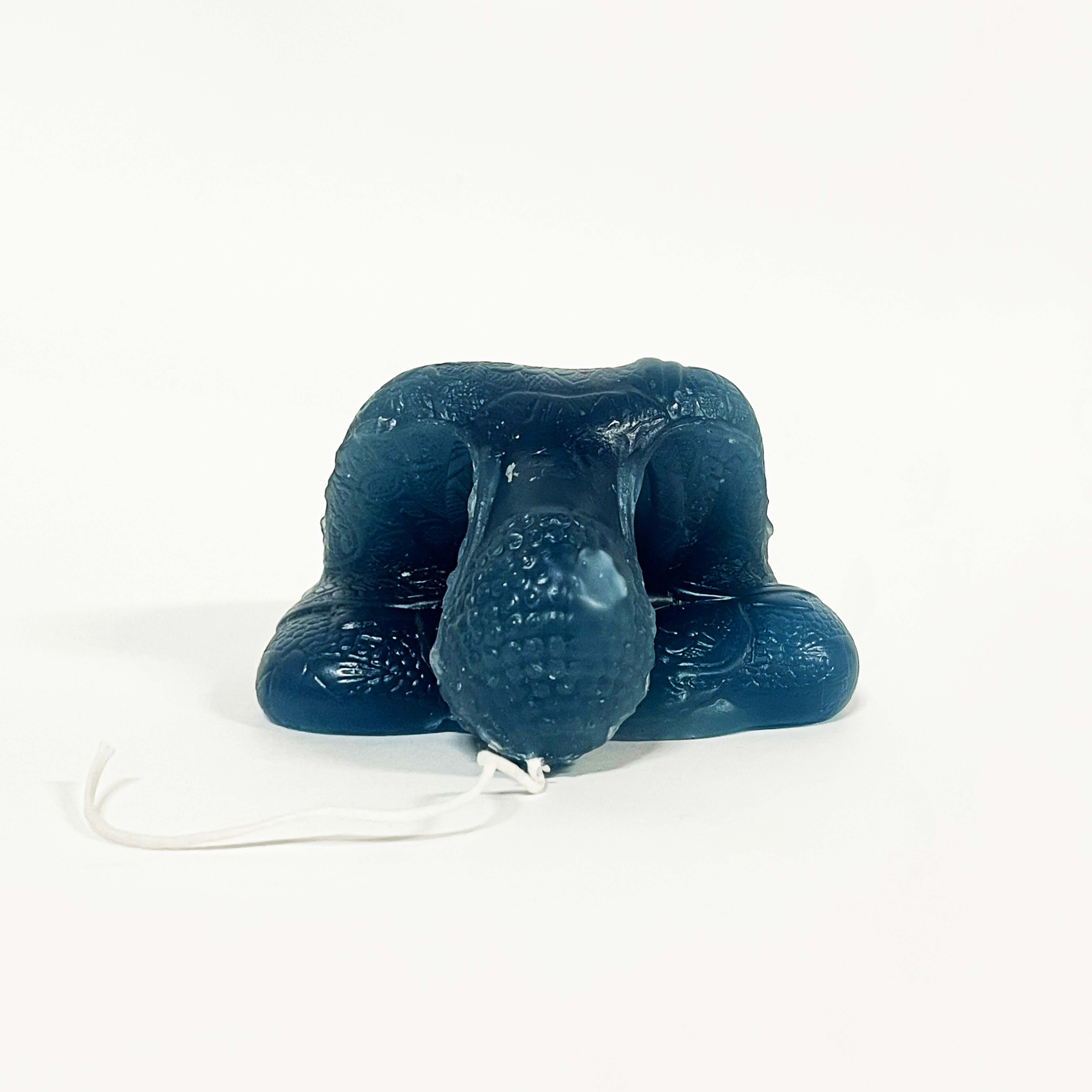 設置した際には他と同様の姿をしたミニ大仏だったのですが、〈蝋ろう〉で出来ているため、直射日光の熱で腰から曲がってしまったようなのです。