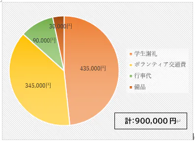 ※手作りケーキ代(10,000円) 生徒プレゼント(5,000円) 飾り付け・衣装(2,000円)飲食物(8,000円)