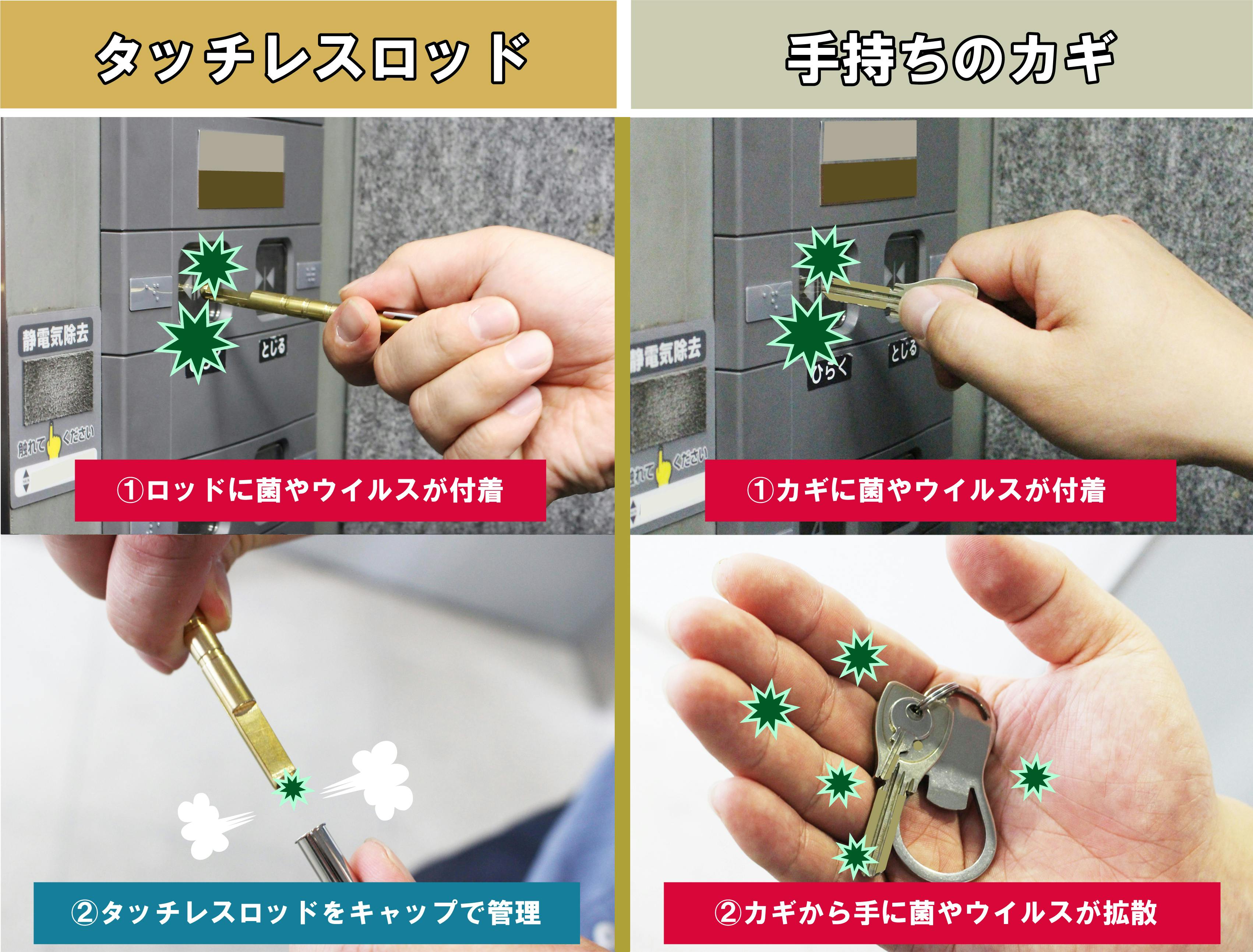 「タッチレスロッド」と「手持ちのカギ」を比較