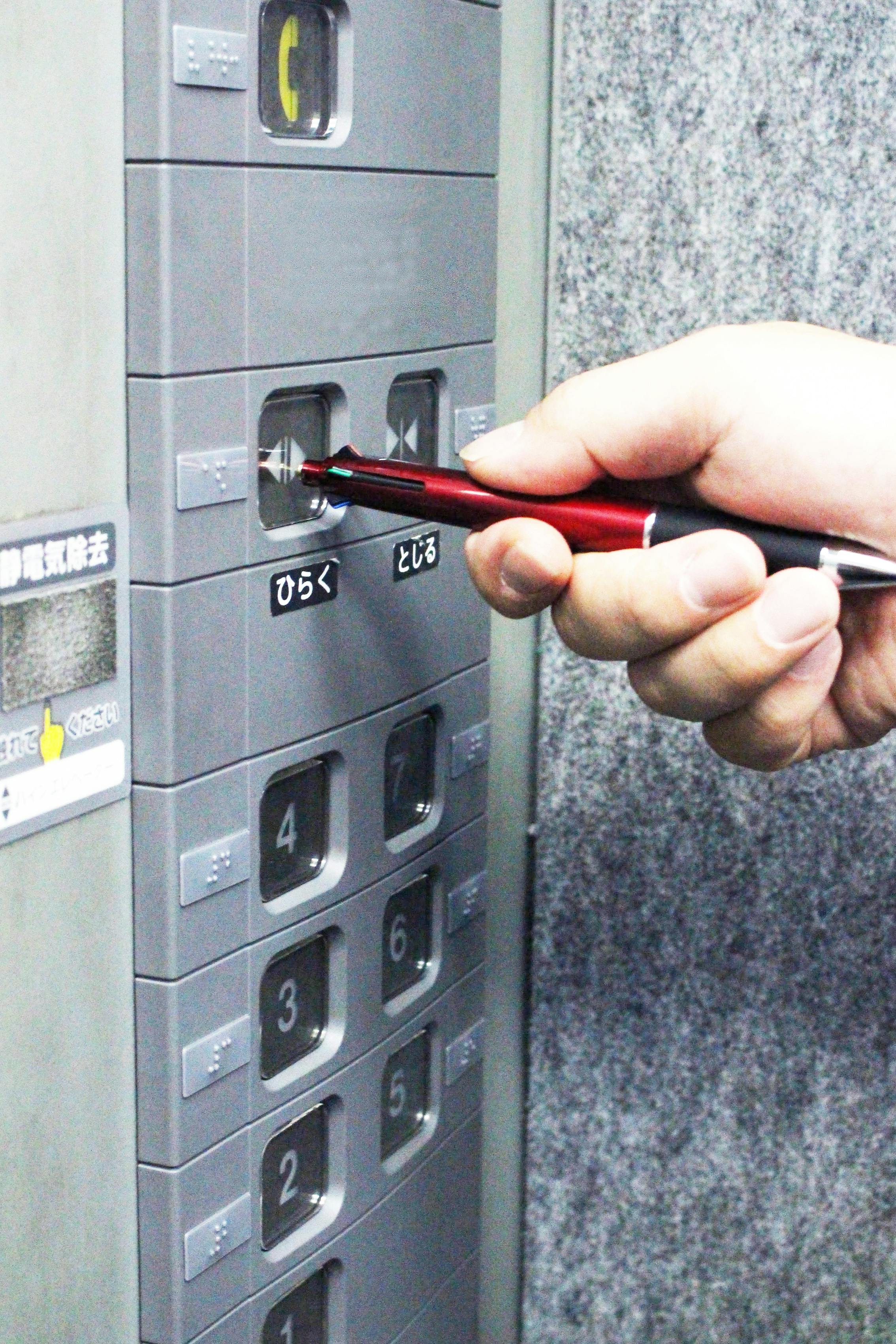 菌やウイルスの付着が不安なボタンやタッチパネルは多機能ペンでタッチ。