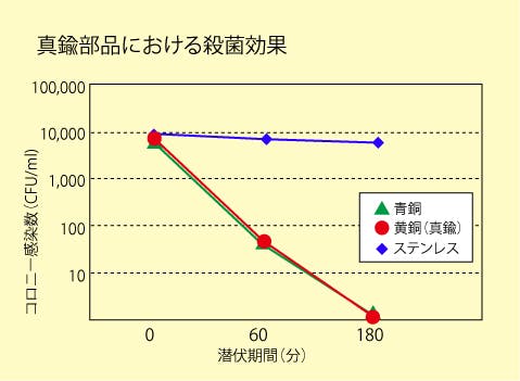 銅イオンの微量金属作用には、細菌類を死滅させる性質があります。