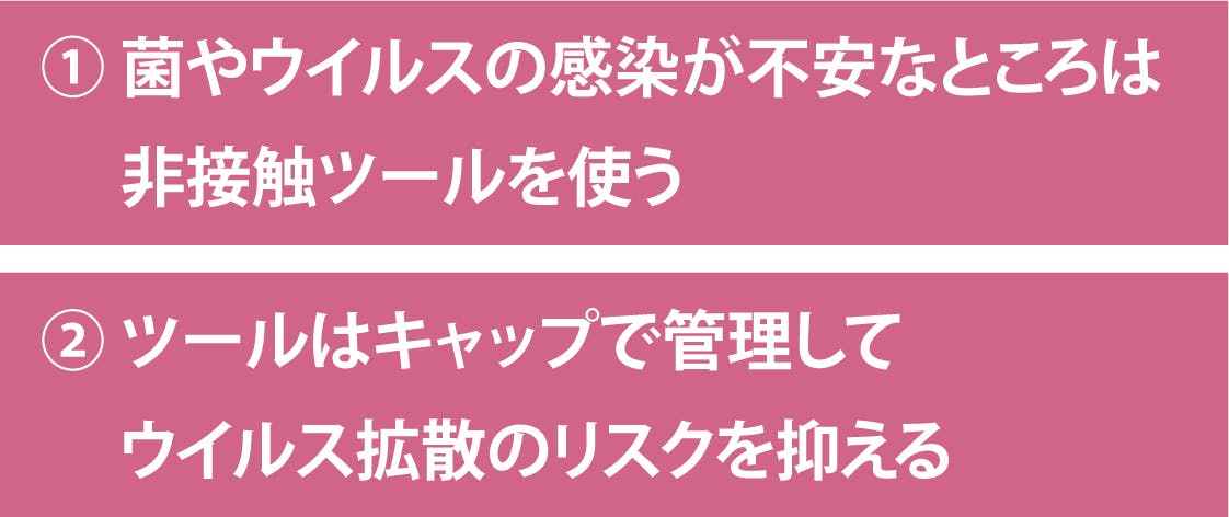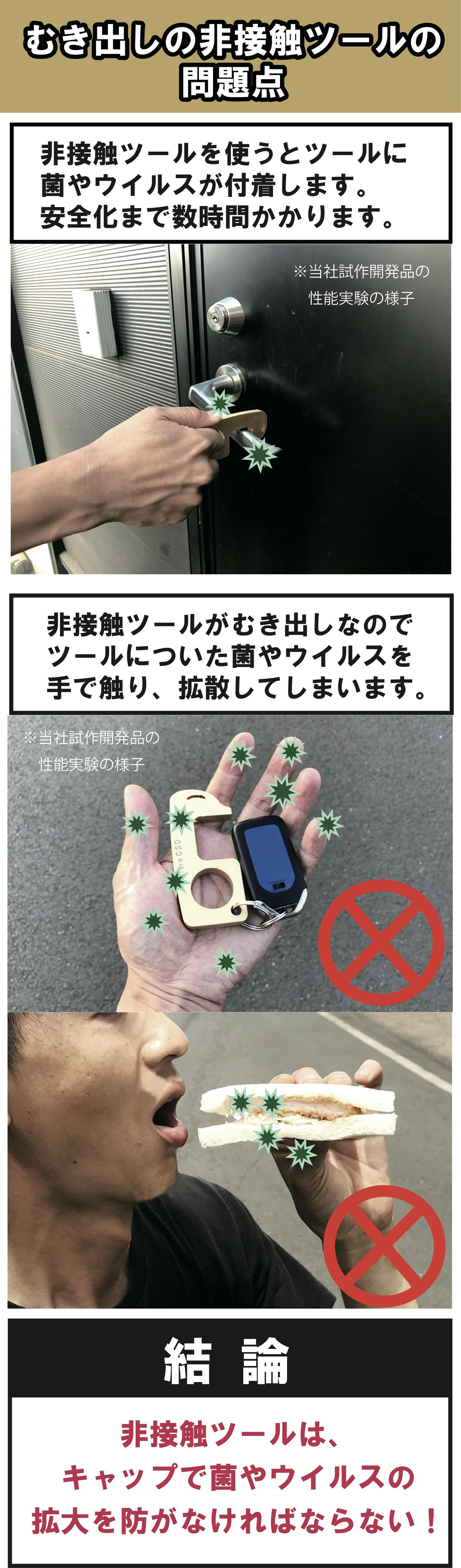 キャップのついた非接触ツールでドアの開け閉めも実現
