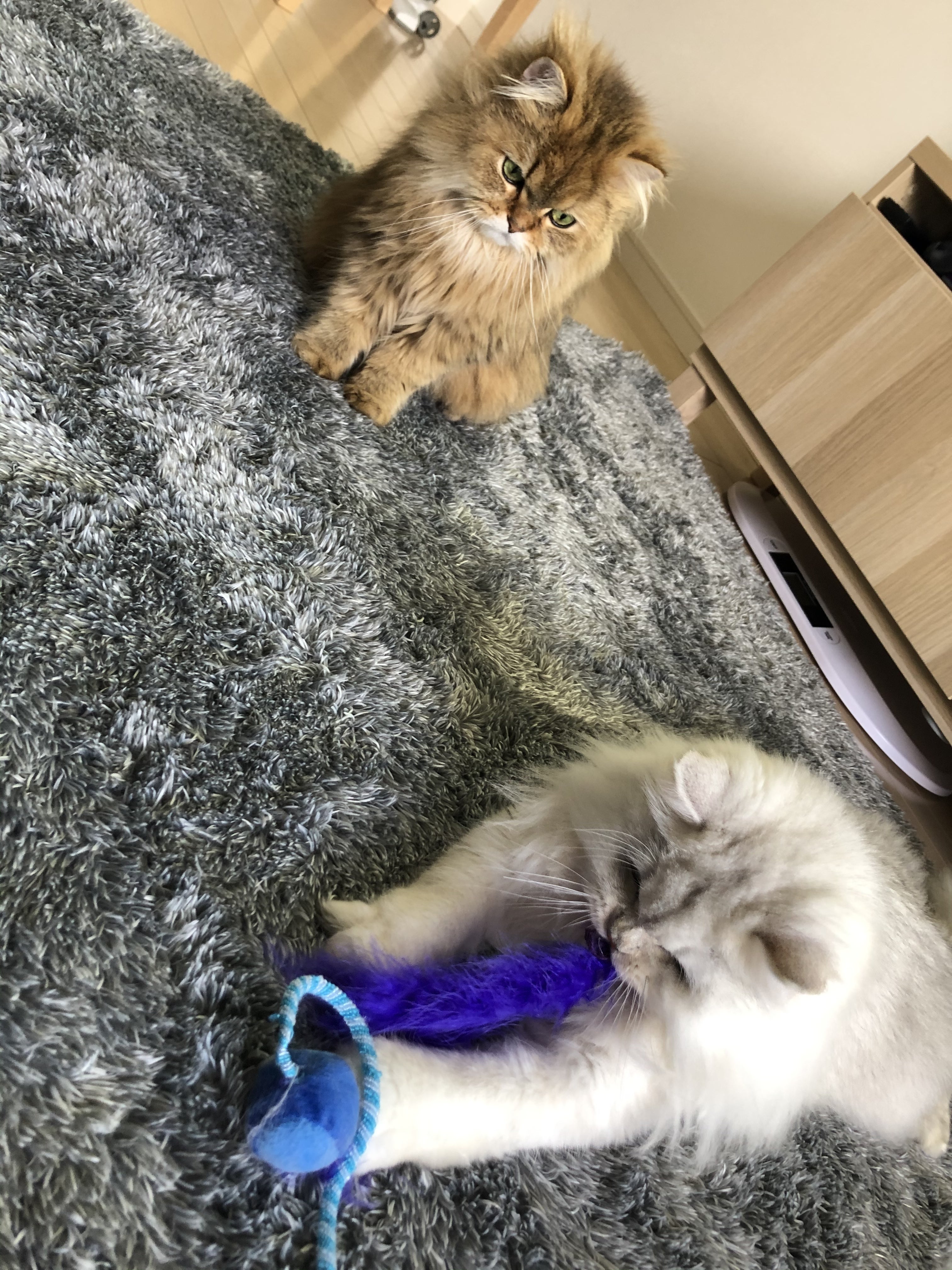 レーチェが二人のお気に入りのおもちゃを壊してしまったのを目撃した途端にのそっと近寄ってきました。