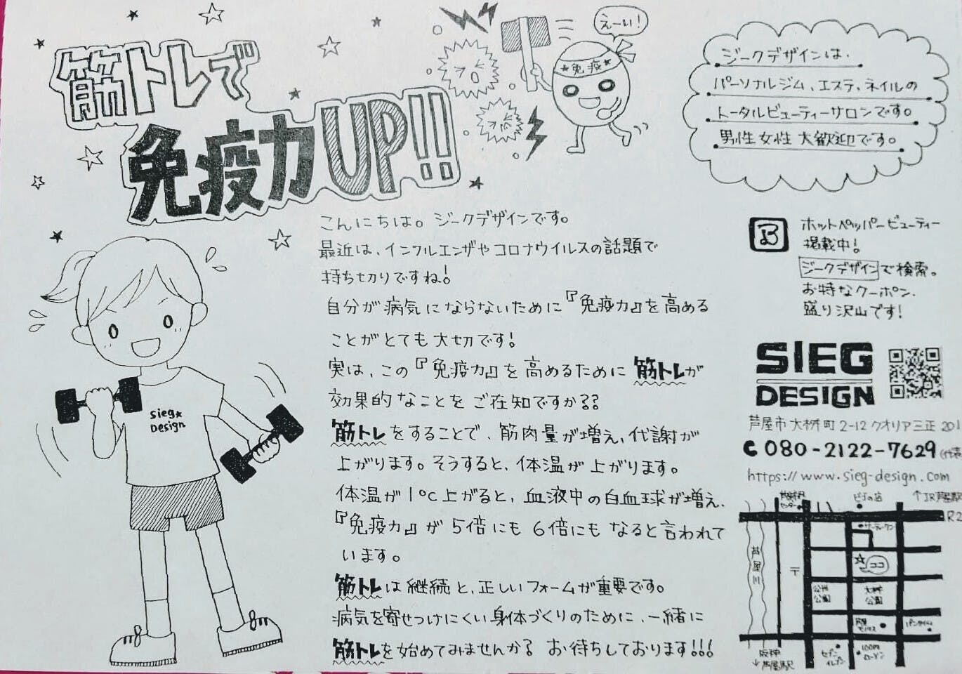 兵庫県芦屋市にあるSiegDesign(ジークデザイン)です。当店は、パーソナルトレーニング・エステ・ネイルが受けられるトータルビューティサロンとして、2019 年10月にスタートしました。