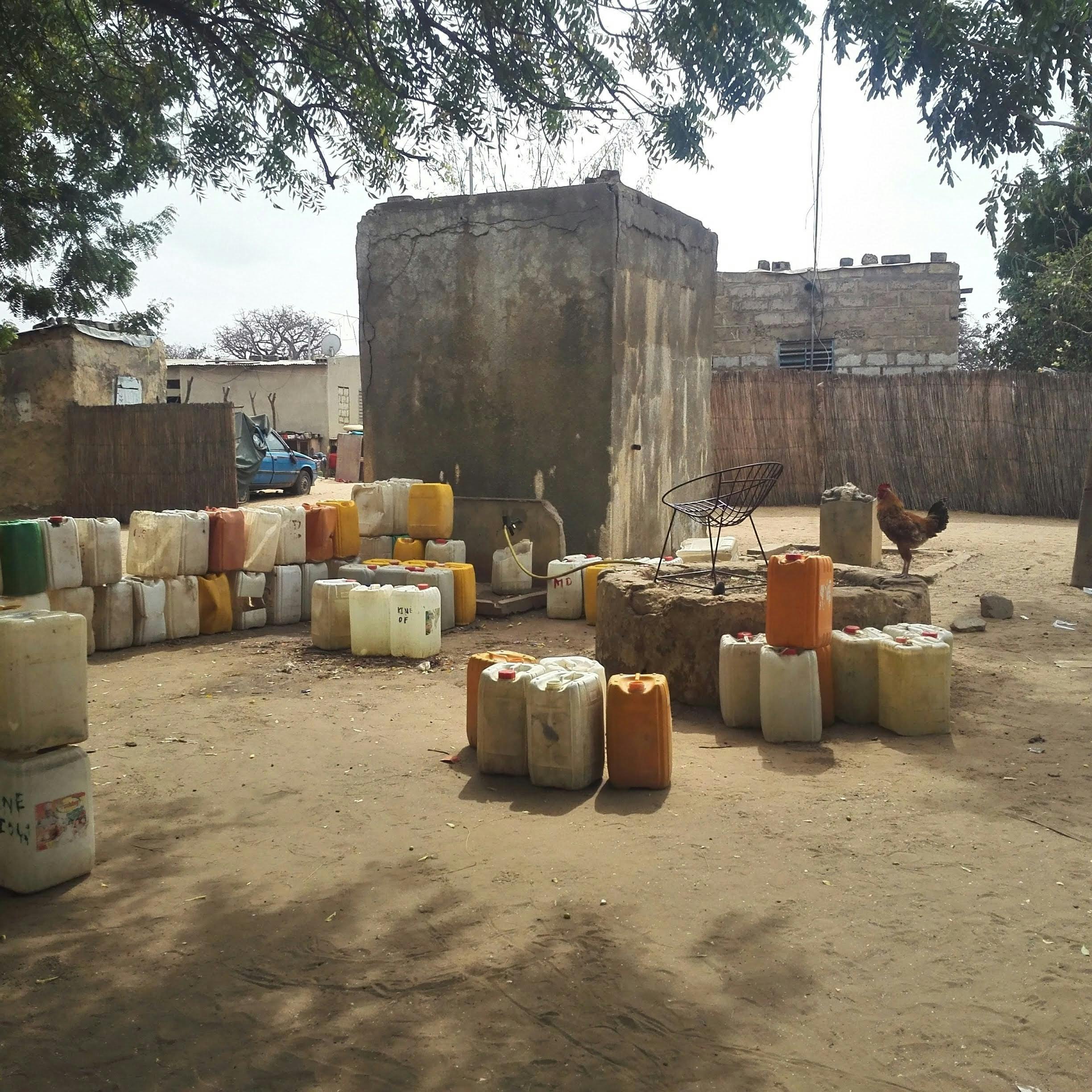 安全な水を確保するために、飲料水は日常的に近所から買わなければならない状況です。