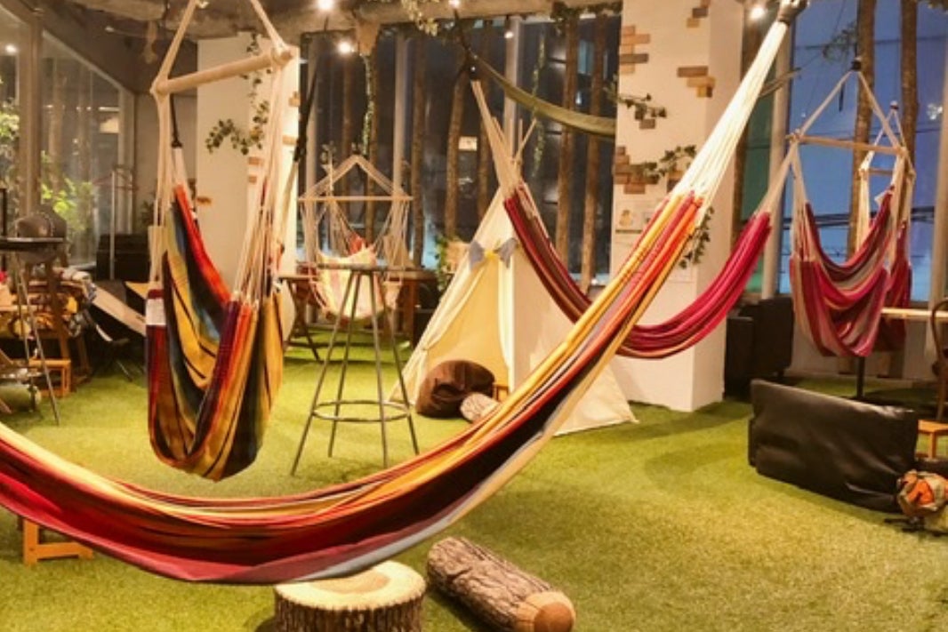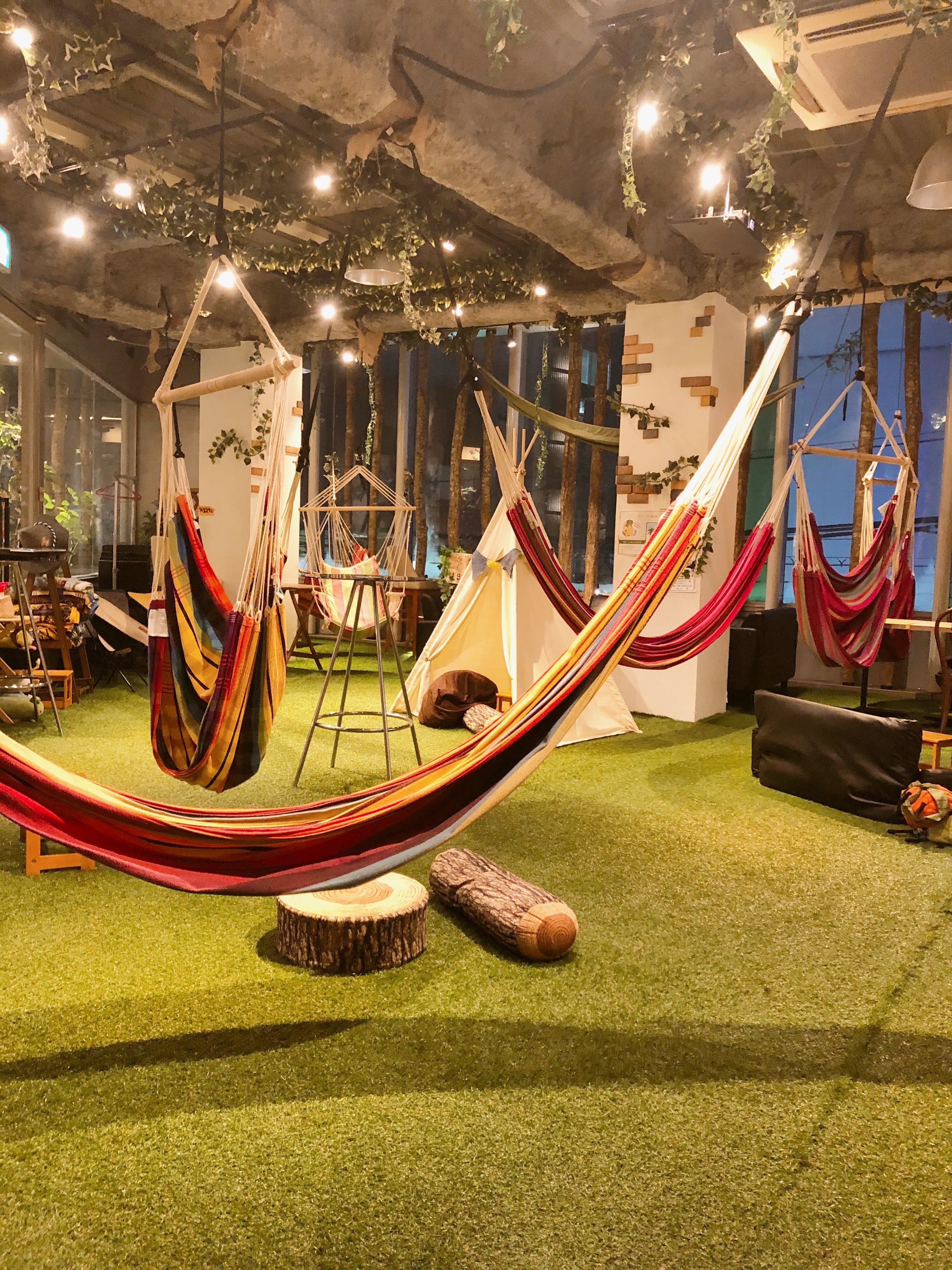そして、現在、5年を迎えようとしているハンモックカフェREVARTIですが、皆さんを飽きさせない店内作りを心がけています!!さらにアウトドアをインドアに詰め込んだお店に向けて走り続けます!