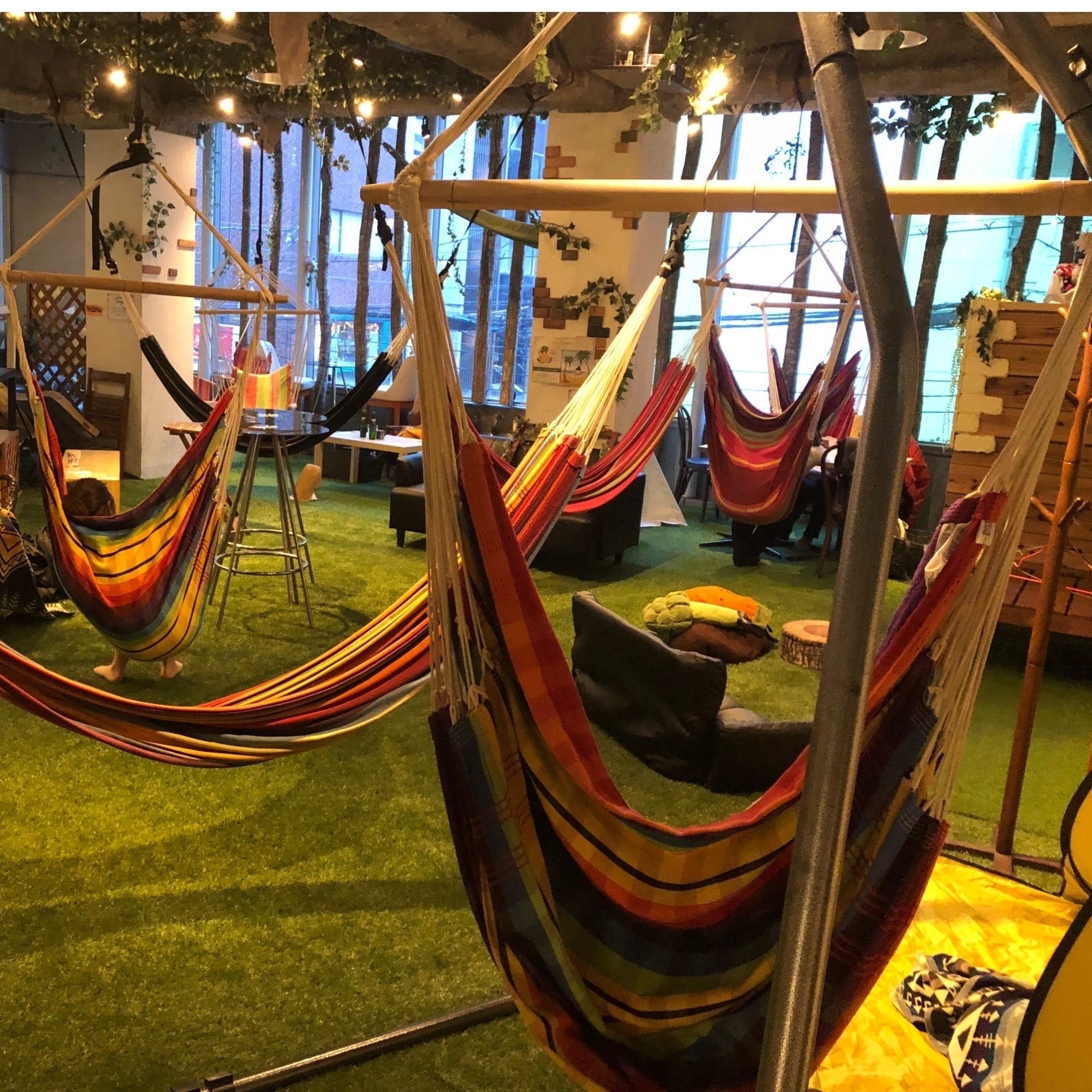 こんにちは、大阪、心斎橋のアメリカ村にある関西初のハンモックカフェREVARTI(リバルティ)です。