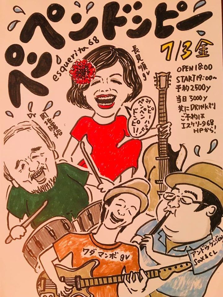 7/3にライブ予定の"ペンペンドンピー"のフライヤー