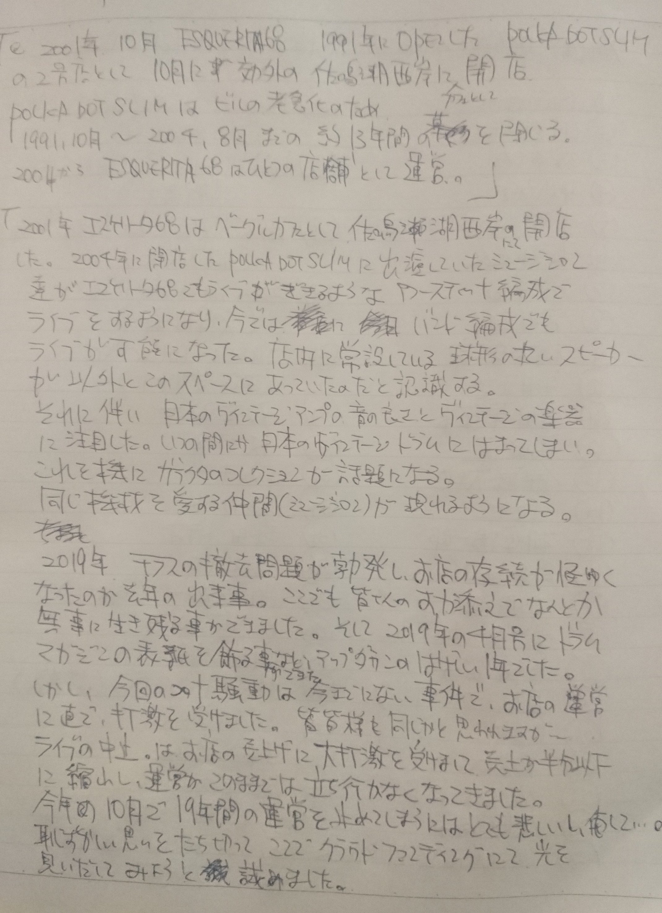 エスケリータ68ははじめはライブをやるつもりでオープンしたわけではなかったようですが、ライブハウス化するのも時間の問題だったわけですね。