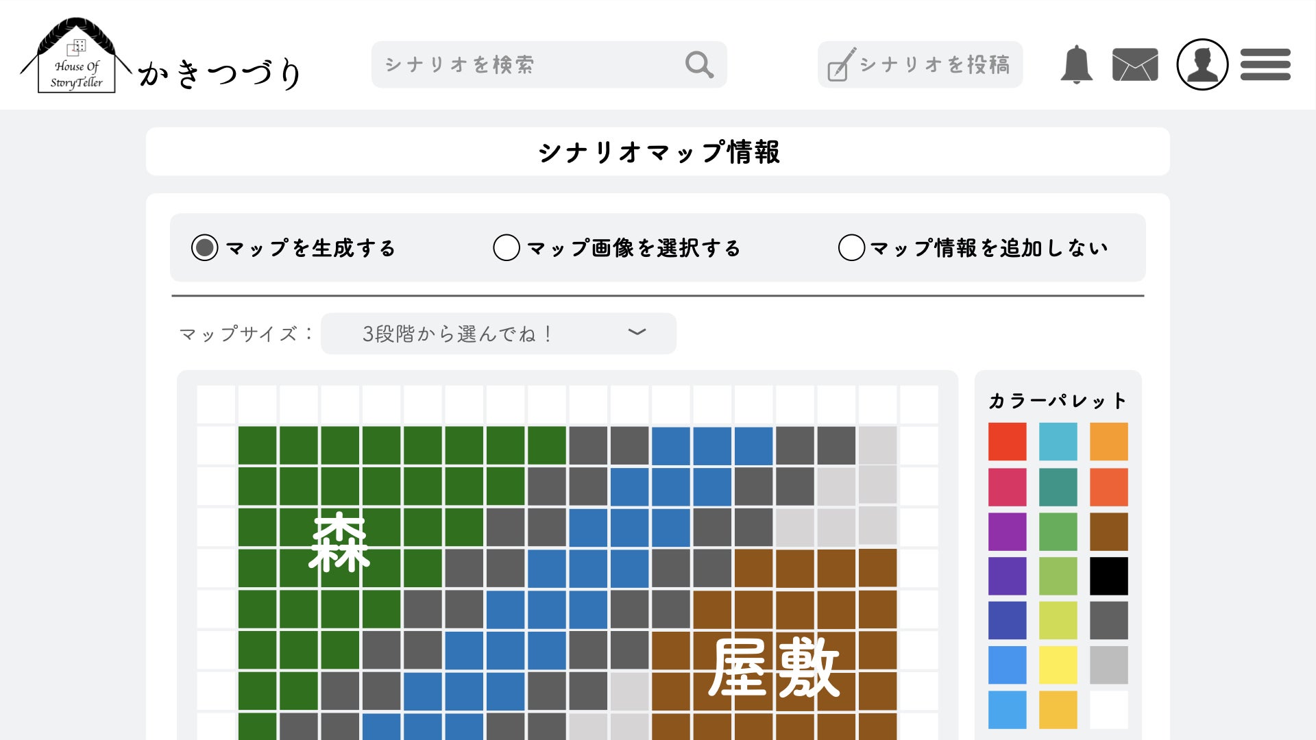 TRPGのシナリオを投稿する際に必要となるマップ生成が簡単にできる!そんなサイトがほしいと思い、TRPGシナリオ投稿サイトとマップを、簡単マウス操作で生成できるサイトを作るプロジェクトを立ち上げました。