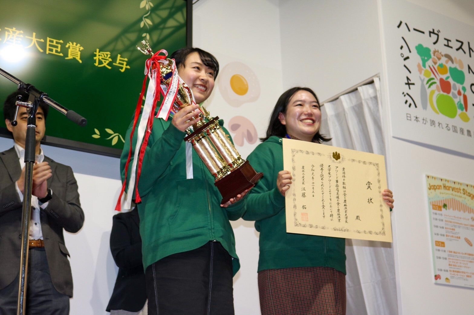私たちの継続的な活動が評価され、2019年度は「食と農林漁業大学生アワード2019」にて、最優秀賞(農林水産大臣賞)を受賞、2020年度は「まちづくり月間まちづくり功労者国土交通大臣表彰」を受賞することができました。