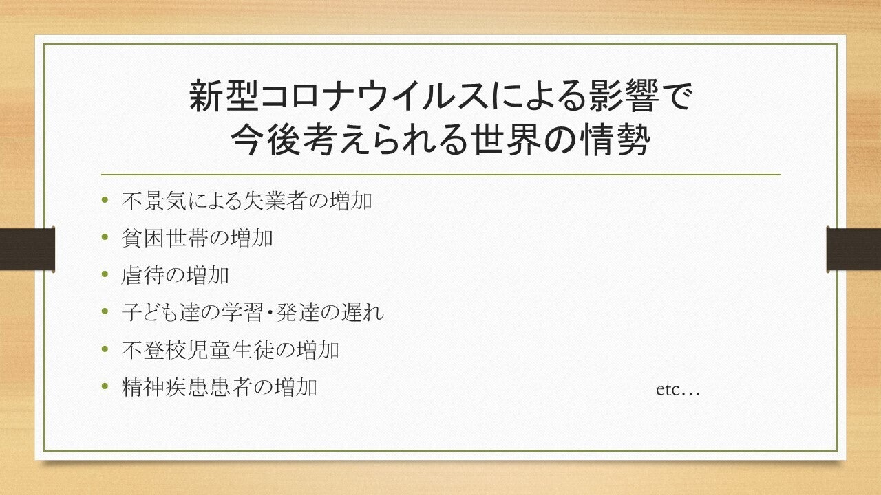 新型コロナウイルスの影響により様々な課題が表出すると予想されます。そして