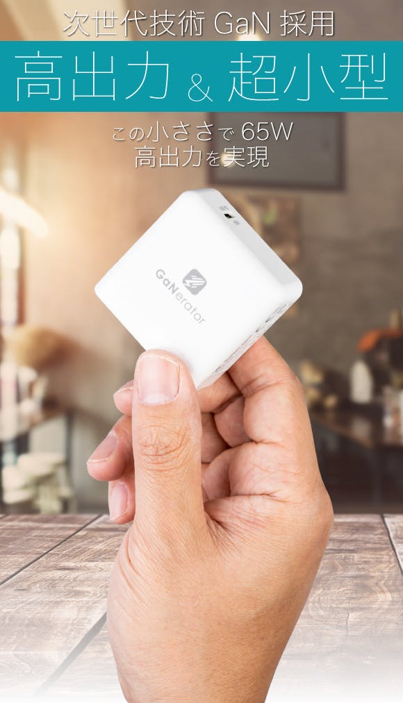 A:GaNとは次世代半導体の素材の名前です。GaNによって今までのシリコンよりも耐圧性と電力効率が高まり小型化し、さらに高出力にすることができるようになりました。
