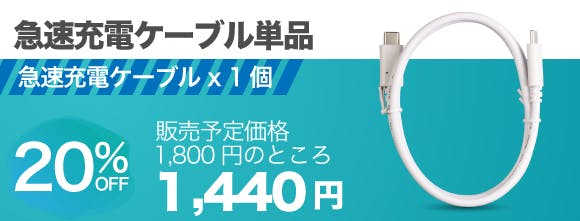 カフェでもこんなにスッキリコンパクト!急速充電ケーブルは1.5mで余裕の長さ。