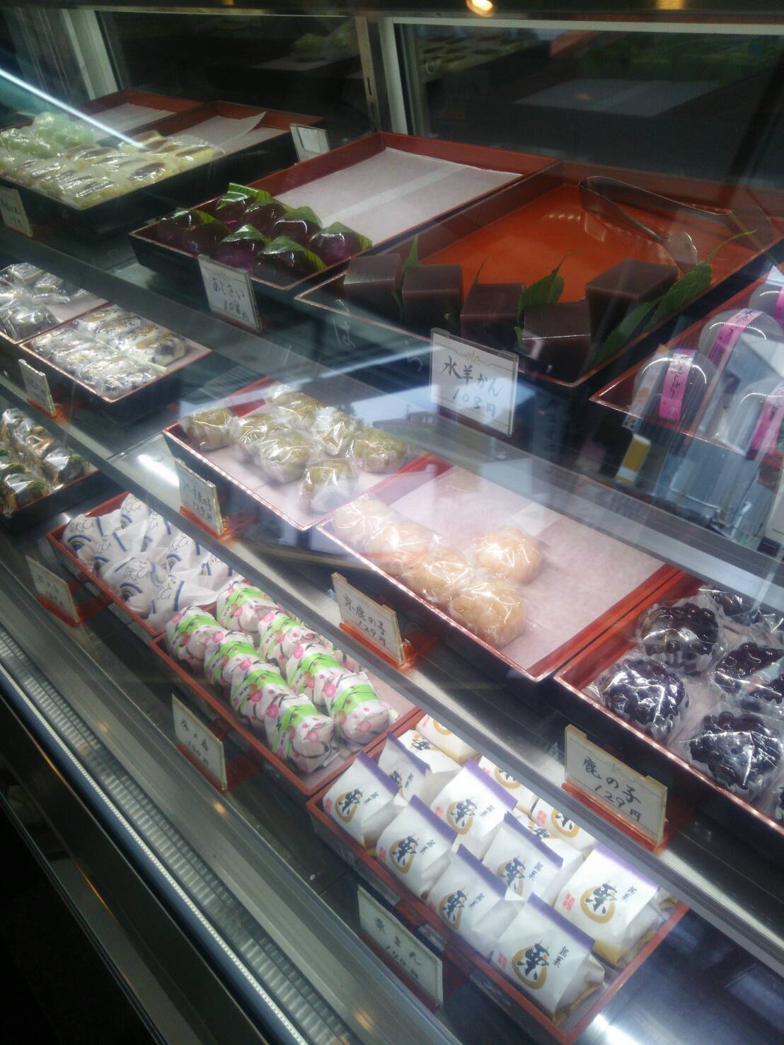懐かしいあんみつなど、色々なお菓子が店内に並んでおります。