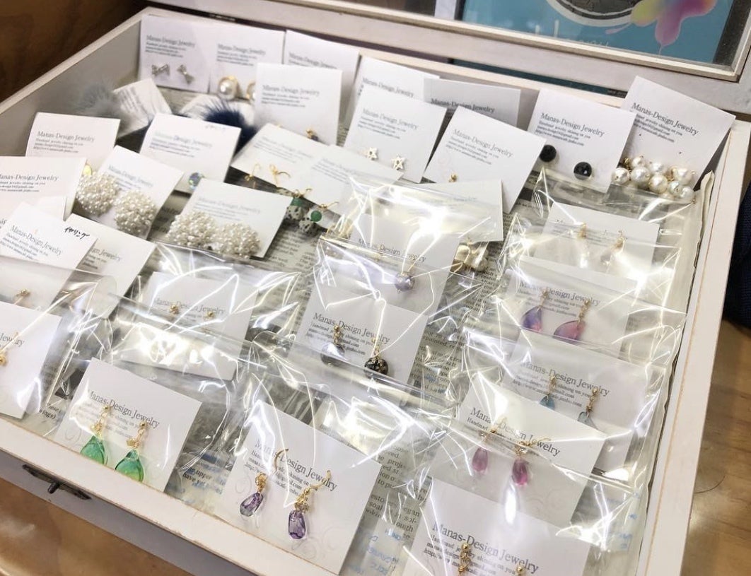 アクセサリーもオーナーのハンドメイドで売っております。