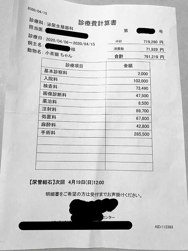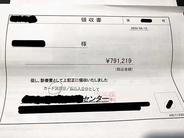 そして、先月4月に受けた手術は約80万円でした。