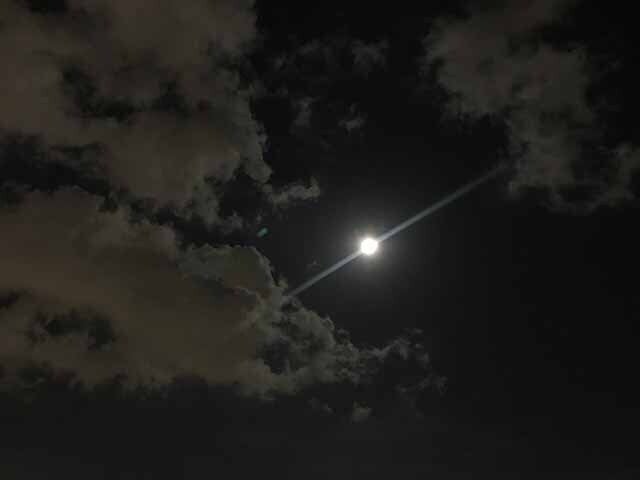 そして、夜もベランダにも出たいと催促してきました。小茶と見上げたその日の月は、フラワームーンと言われる綺麗な満月でした。