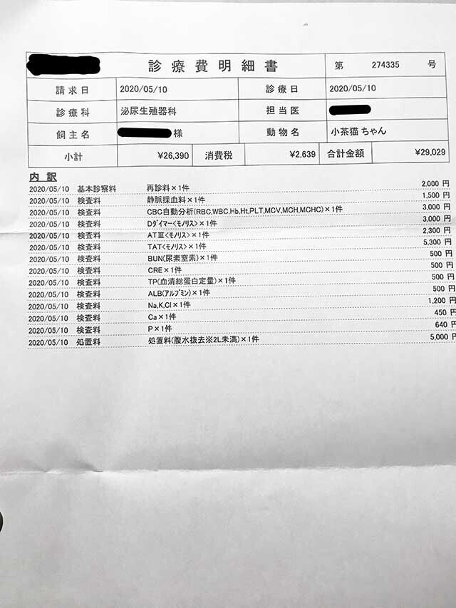 いただいた資金は全て小茶の手術代、治療費の支払いに使わせていただきます。