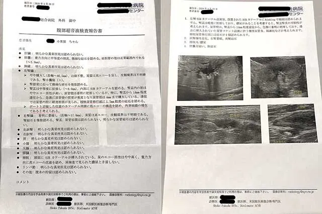 嘔吐が始まり、あまりに様子がおかしい事から受けた検査でわかったのですが、もうすでに小茶の右側の腎臓は萎縮して機能しておらず、腎臓は左側の1つのみ。