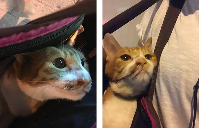 退院時の小茶 久々のお外に興奮していました