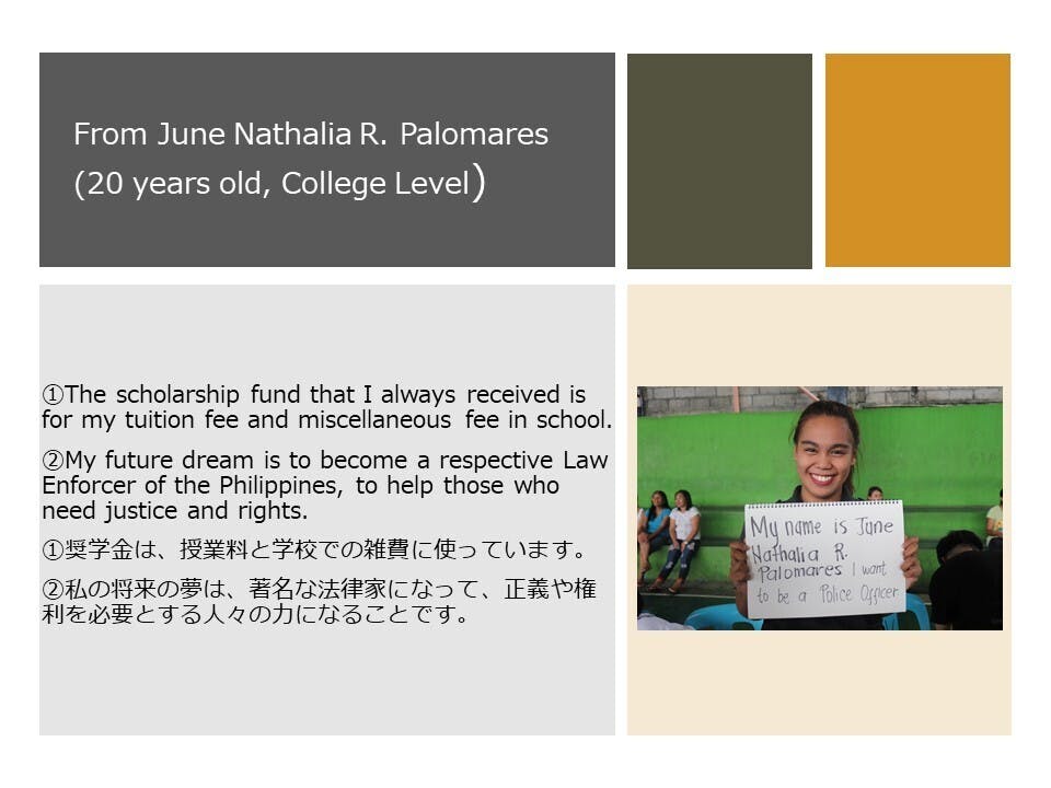 本文へ載せきれなかった奨学生へのインタビューを少しずつこちらに載せていきたいと思います。