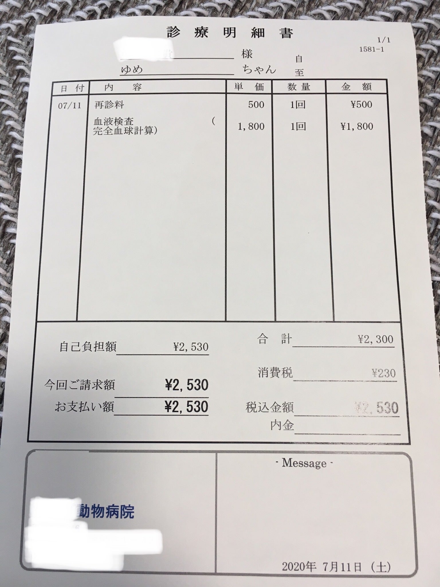 昨日(7/11)の土曜日にゆめちゃんの検査に行ってきました。