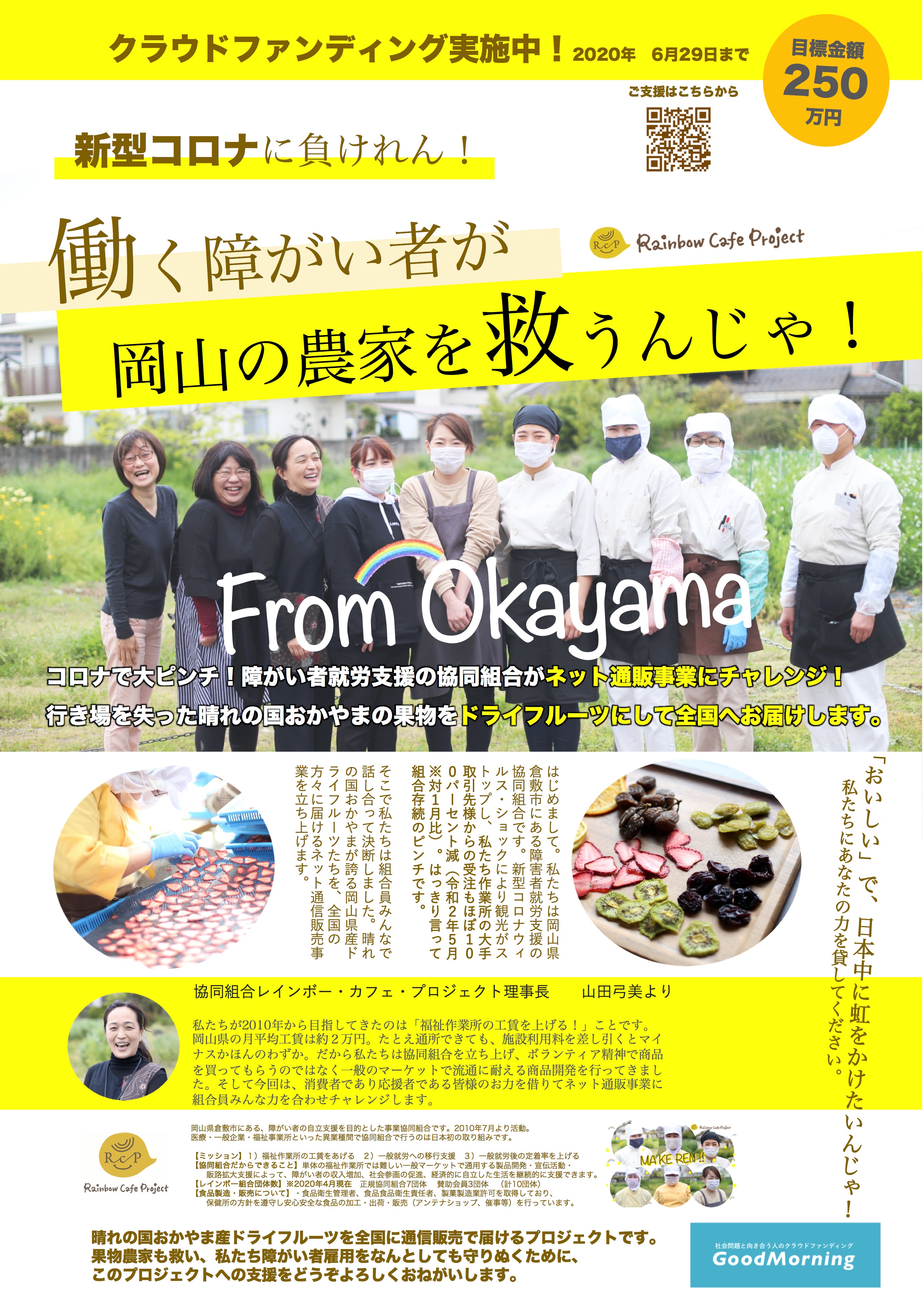 岡山県倉敷市の障がい者就労支援協同組合がクラウドファンディングをしています。新型コロナ不況で協同組合の作業受注が100%近くダウン。