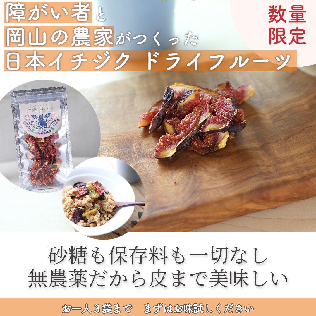 岡山の働く障がい者と無農薬栽培のイチジク農家を一緒に作りあげた無添加ドライフルーツが誕生しました。太田さんの農園には昨年 松岡修造さんもロケで来てくださいました。今年は厳しい天候不順で、岡山の桃やブドウも厳しい影響を受けています。西日本名産でもある日本イチジクもかなり生育でご苦労されて収穫タイミングが大きくずれてしまいました。