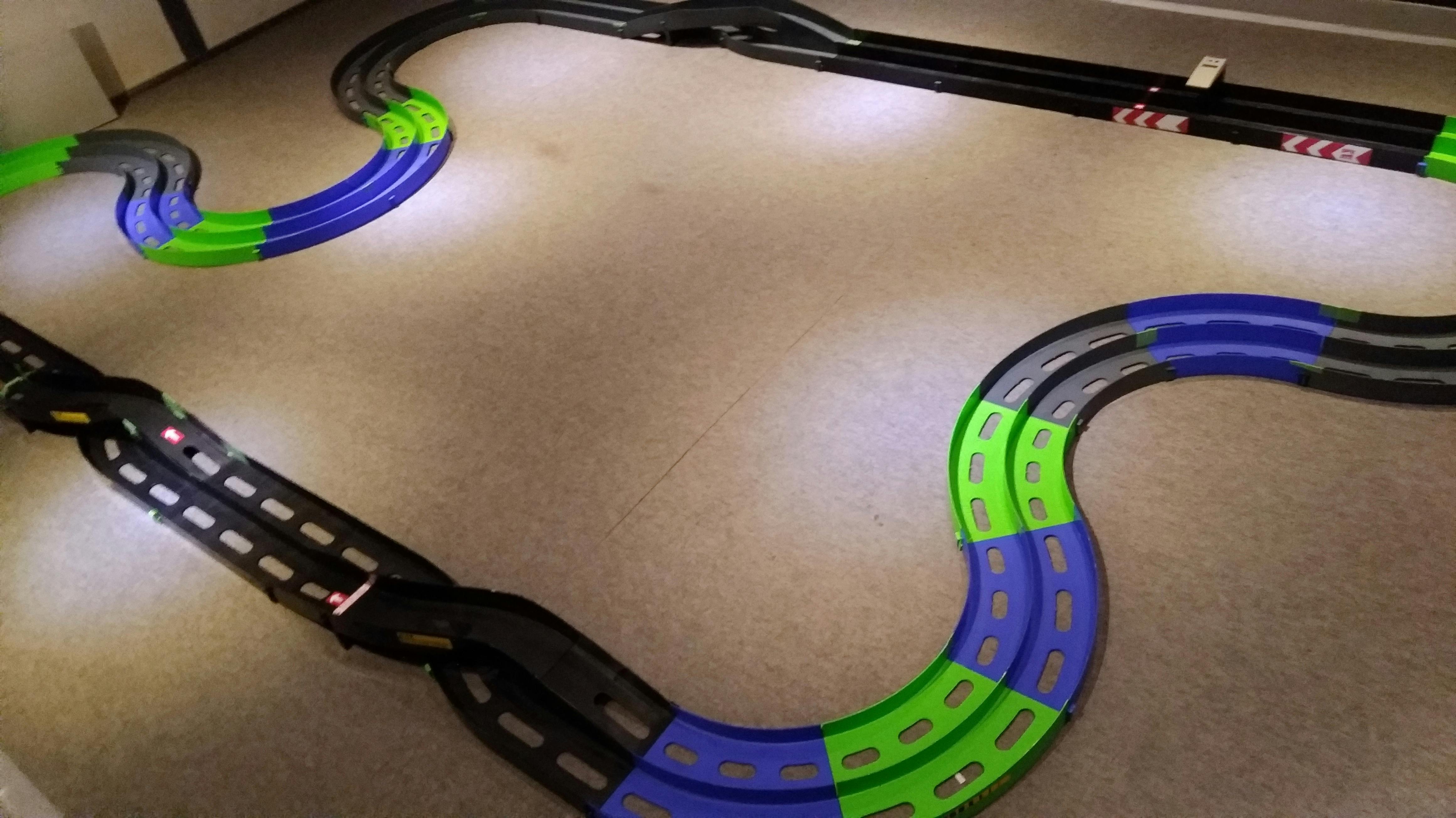 とはいえ、居ても立ってもいられず、早速家族で食事がてらお邪魔。貴重な2レーンレイアウトをちょっとだけ走らせてもらいました!2レーン大会面白いかも?