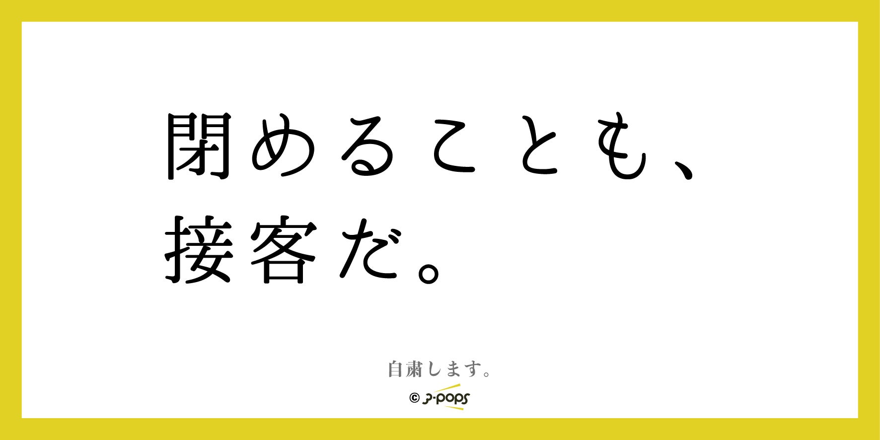自粛することを決断したお店、自粛したくても出来ないお店の方々の気持ちを少しでも代弁できればと思い「自粛POP」「非自粛POP」計22種類を作りました。