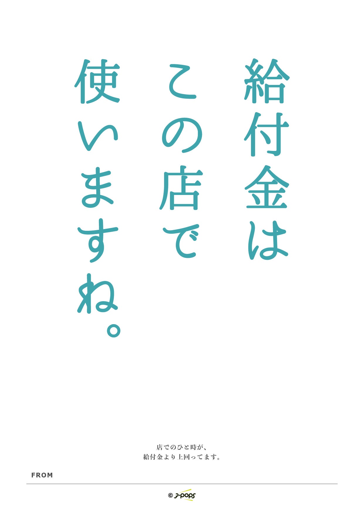 第2弾はそんなお店を応援したいお客さん向けの「応援POP」を13種類作りました。一言メッセージを添えてお店のシャッターに貼ってあげるのもよし、データで送ってあげるのもよし。店主が少しでも前向きな気持ちになるように応援してあげてもらえればという気持ちを込めました。