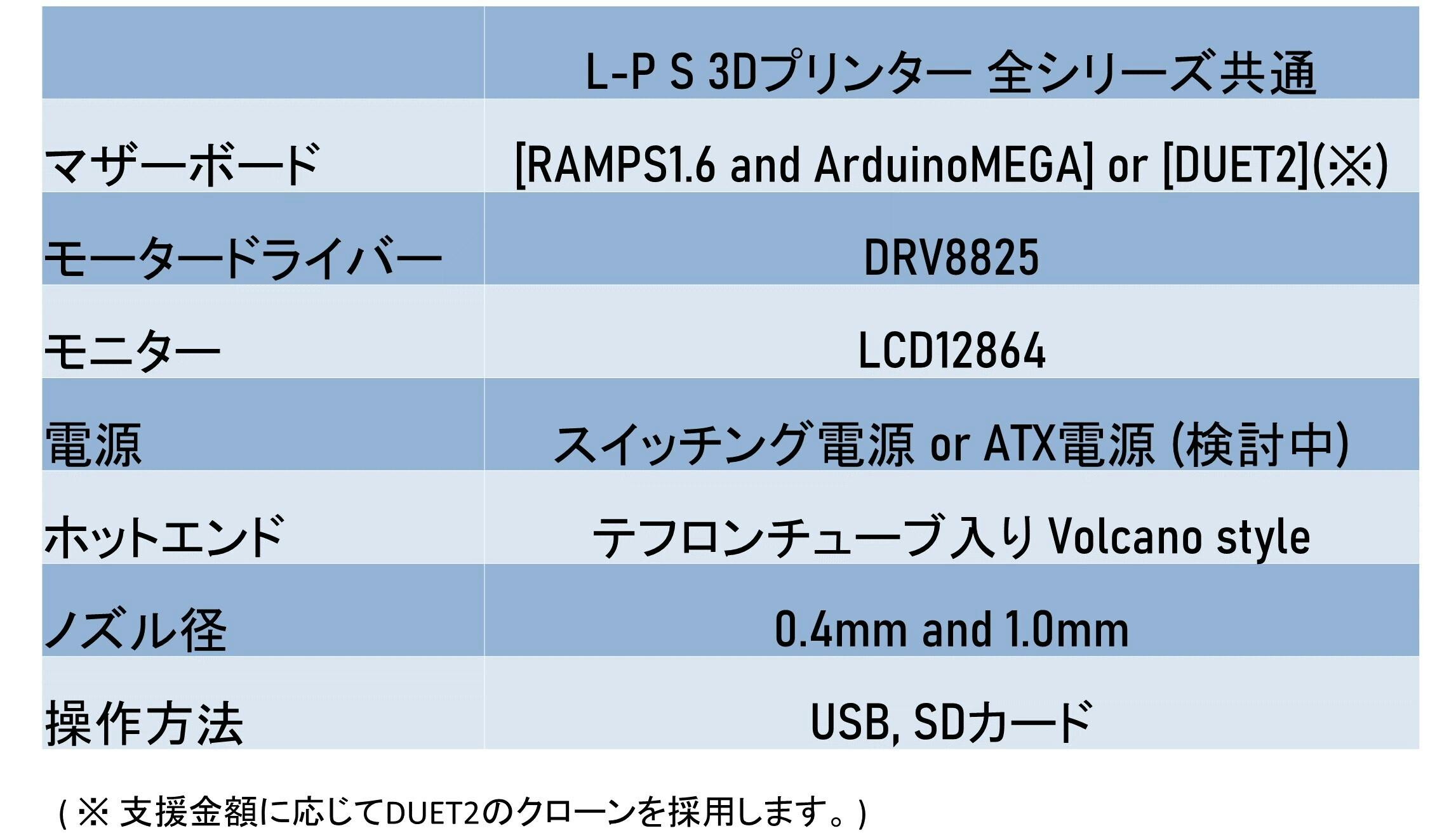 A : 現段階ではRAMPS1.6を予定していますが、支援額に応じてDUET 2のクローンに変更する可能性があります。