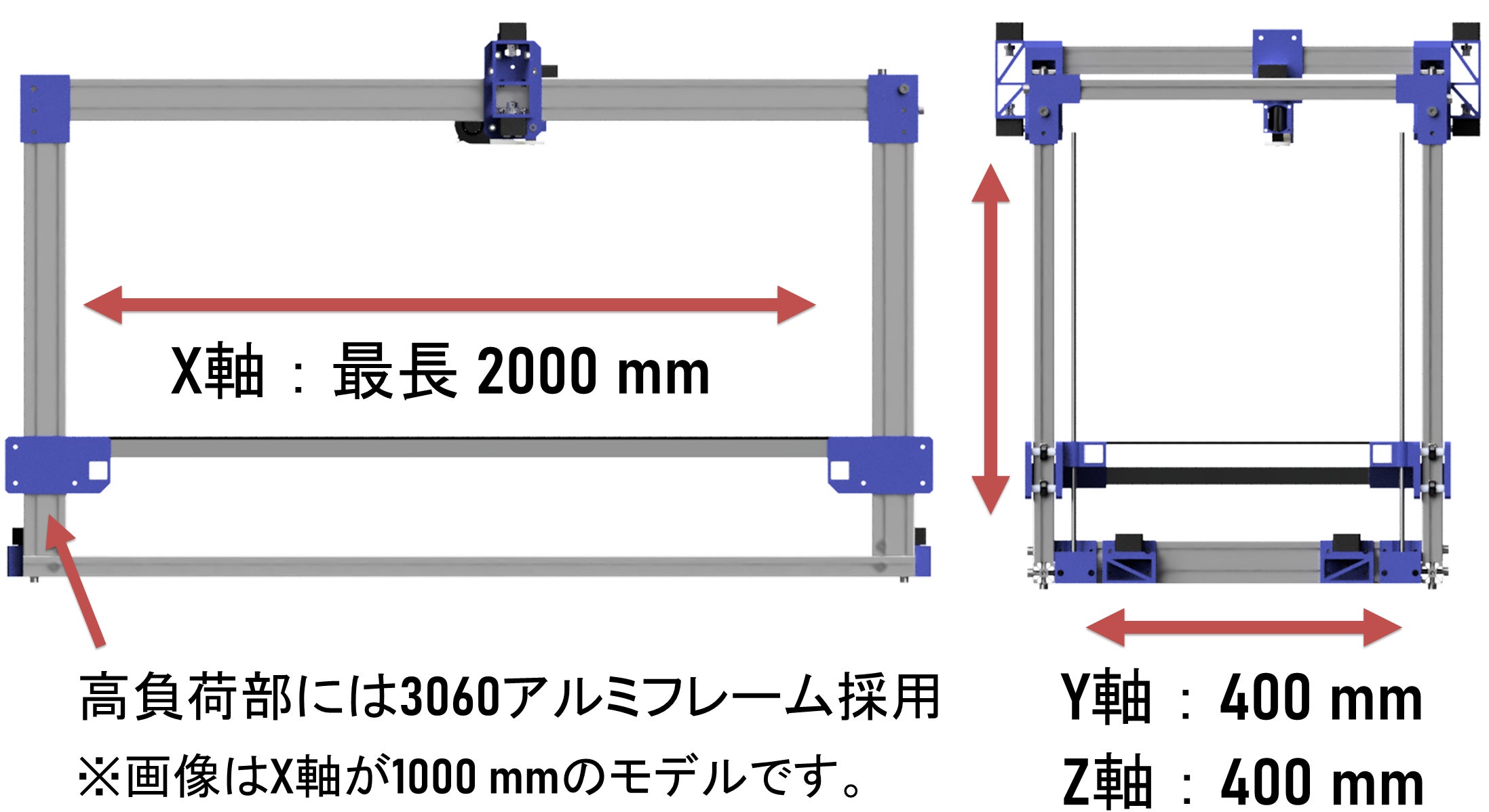 X軸 : 400mm, 600mm, 800mm, 1000mm, 1500mm, 2000mm