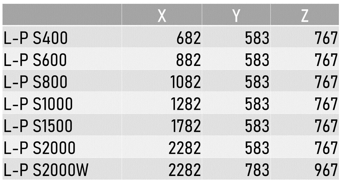 L-P S 2000のX軸サイズとZ軸サイズが+200mm大きくなったモデルです。