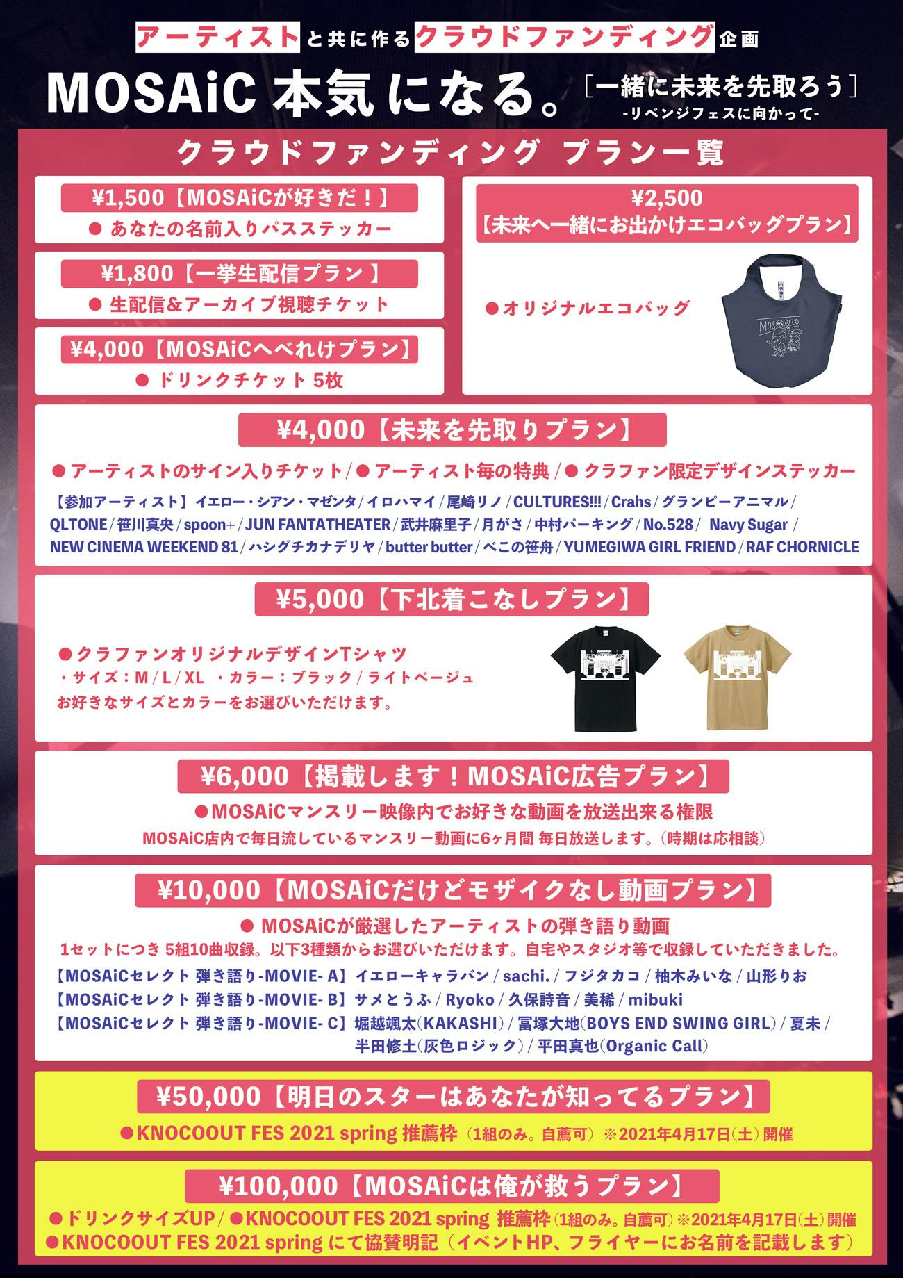 そしてこの度、皆様のお力をお借りすることになりますが、この逆境に立ち向かうべく「MOSAiC、本気になる。〜 一緒に未来を先取ろう!リベンジフェスに向かって〜」プロジェクトを立ち上げるに至りました。