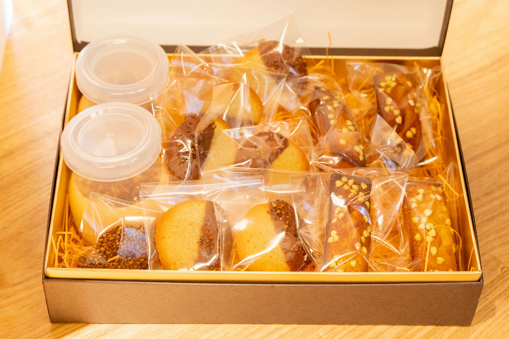 フィナンシェ4個、ラングドシャ6個、ババロア2個