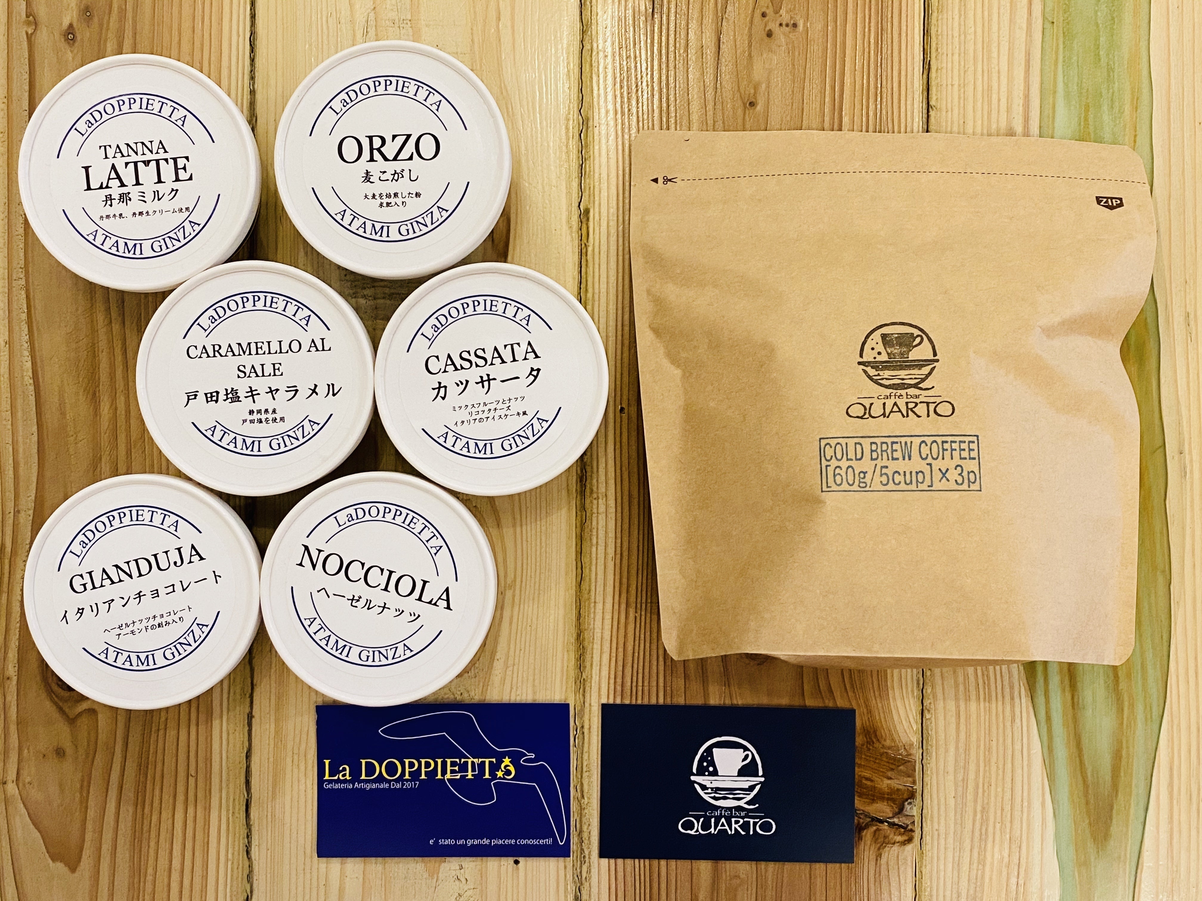 熱海店のある「シェア店舗RoCA」でともに営業している『 caffè bar QUARTO 』のドリップバッグコーヒーの付いたセットです。(5,500円)