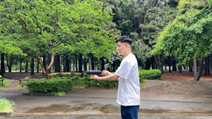 折り畳み傘の便利なポイントは、傘布の自動開閉。持ち手にあるボタンを親指で押すだけで傘布の開閉が可能です。※柄の収縮は手動で行う必要があります。