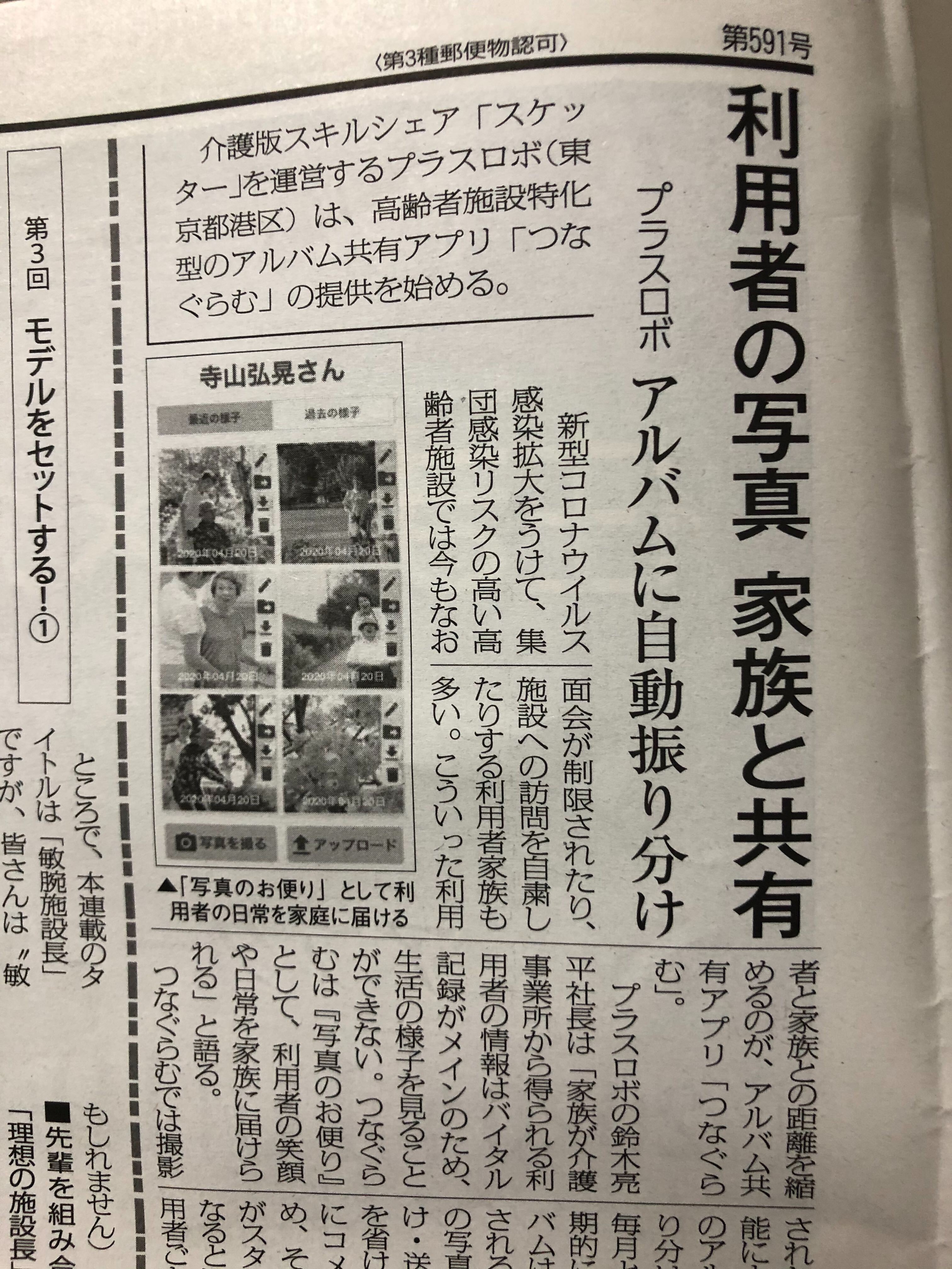 8月11日、写真のお便りサービス「つなぐらむ」を正式にリリースいたしました。ご支援いただいた皆様、ご協力本当にありがとうございました。順次、リターンの対応をさせていただきます。新型コロナウイルスの感染防止対策として、介護業界では多くの施設が「面会制限」を継続しており、施設利用者とその家族が思うように会えない日々が続いております。「様子を知りたい」「顔を見たい」という家族の要望に応えるため、ビデオ通話によるオンライン面会を取り入れる動きもありますが、日々のオペレーションや環境などの問題から活用が進んでいないのが現状です。また、様子を伝えるために利用者の写真を印刷して郵送で家族に送るなど、写真共有の手間が負担になっているという課題もありました。こうした業界課題を解決するのが「つなぐらむ」です。「つなぐらむ」では、スマホやPCで利用者の写真を、各利用者のファイルにアップするだけで、その利用者の家族ごとに「写真のお便り」として施設生活の様子を毎月自動的に届けることができます。お便りには、月ごとにテンプレート文が用意されており、任意で「行事のお知らせ」などを追記することもできます。また今後は、「つなぐらむ」で管理したアルバムを、誕生日などの記念日にプレゼントとしてフォトブック化したり、顔認証機能によって写真を自動で利用者ごとのフォルダに振り分ける機能の実装を検討しております。アナログで煩雑だった家族への写真共有やお便りの送付を「つなぐらむ」で簡単にできるようにすることで、施設側の負担を解消し、家族に安心を届けてまいります。●価格自由で提供「つなぐらむ」は業界応援企画として、2021年の1月まで「価格自由」で提供いたします。導入時に顧客が価格をサービスコンセプトへの「共感度合い」で選択(0円、3000円、6000円、9000円、12000円から選択)することができます。「つなぐらむ」公式サイトはこちらつなぐらむ▼https://www.ttgram.jp