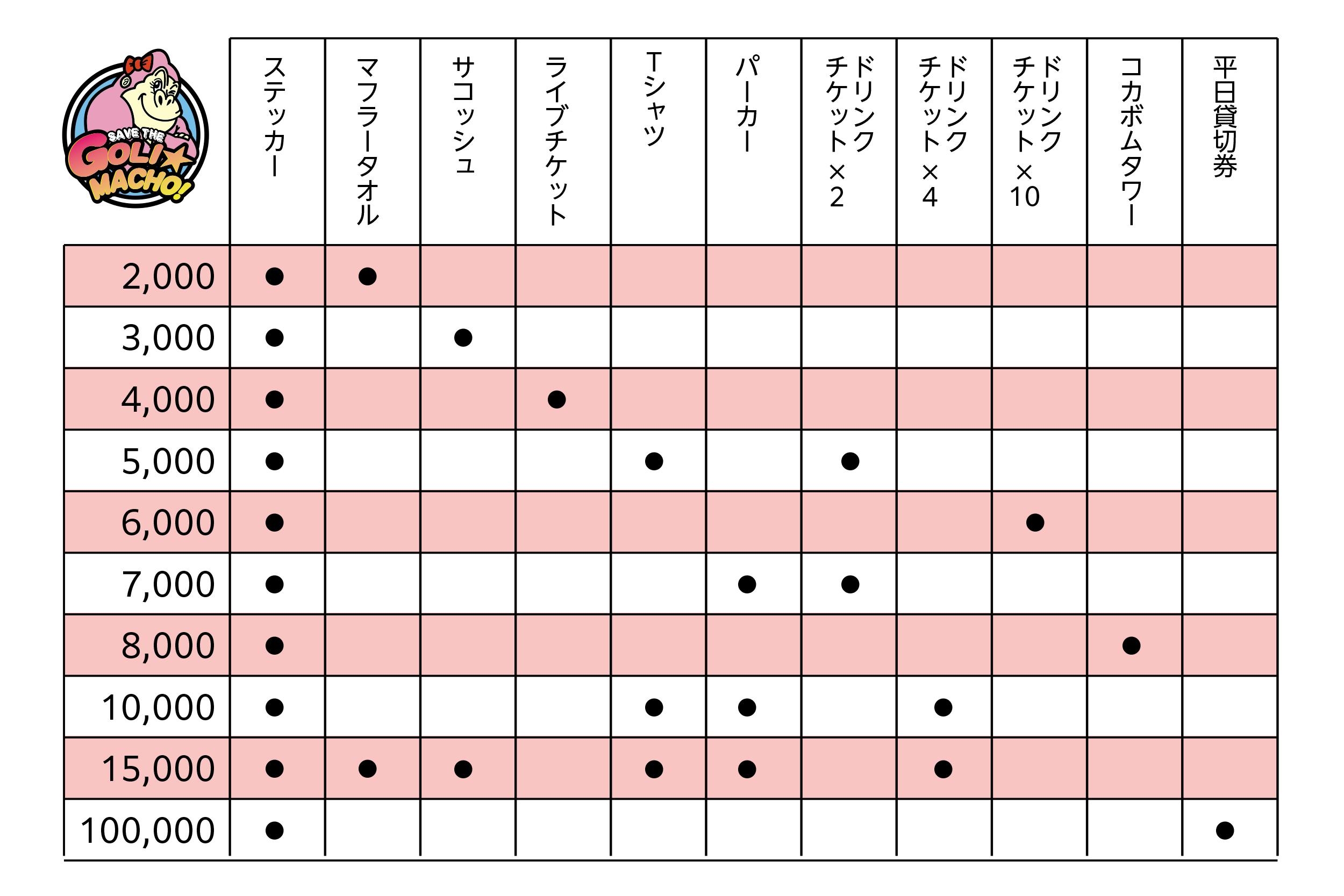 ※各リターンにございますGOLI★MACHO!オリジナルのステッカー・Tシャツ・パーカー・マフラータオル・サコッシュはすべて【クラウドファンディング限定】のものとなります。