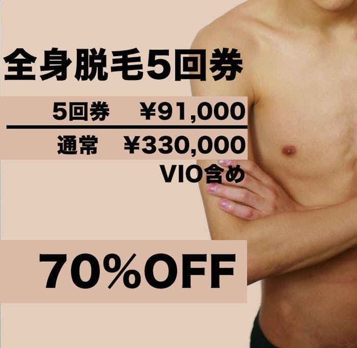 ■91,000円⇒全身脱毛5回券(体全体・VIO含め・顔以外)/通常価格 330,000円税別(カウンセリング含め60分)