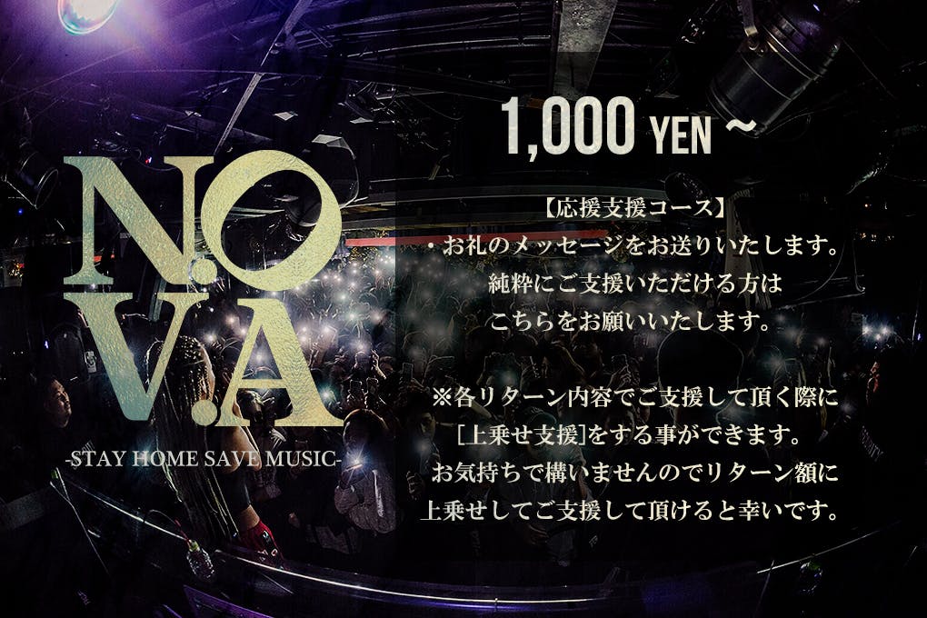 自粛要請による休業の為、資金確保も難しく危機的状況にありますが、クラウドファンディングを通じて皆様のご支援を賜り全員が熱い気持ちでオンライン型フェスという今までにないものを創り上げ音楽から得られる喜びを共有していきたいと思いますのでどうかご支援のほどよろしくお願い申し上げます。