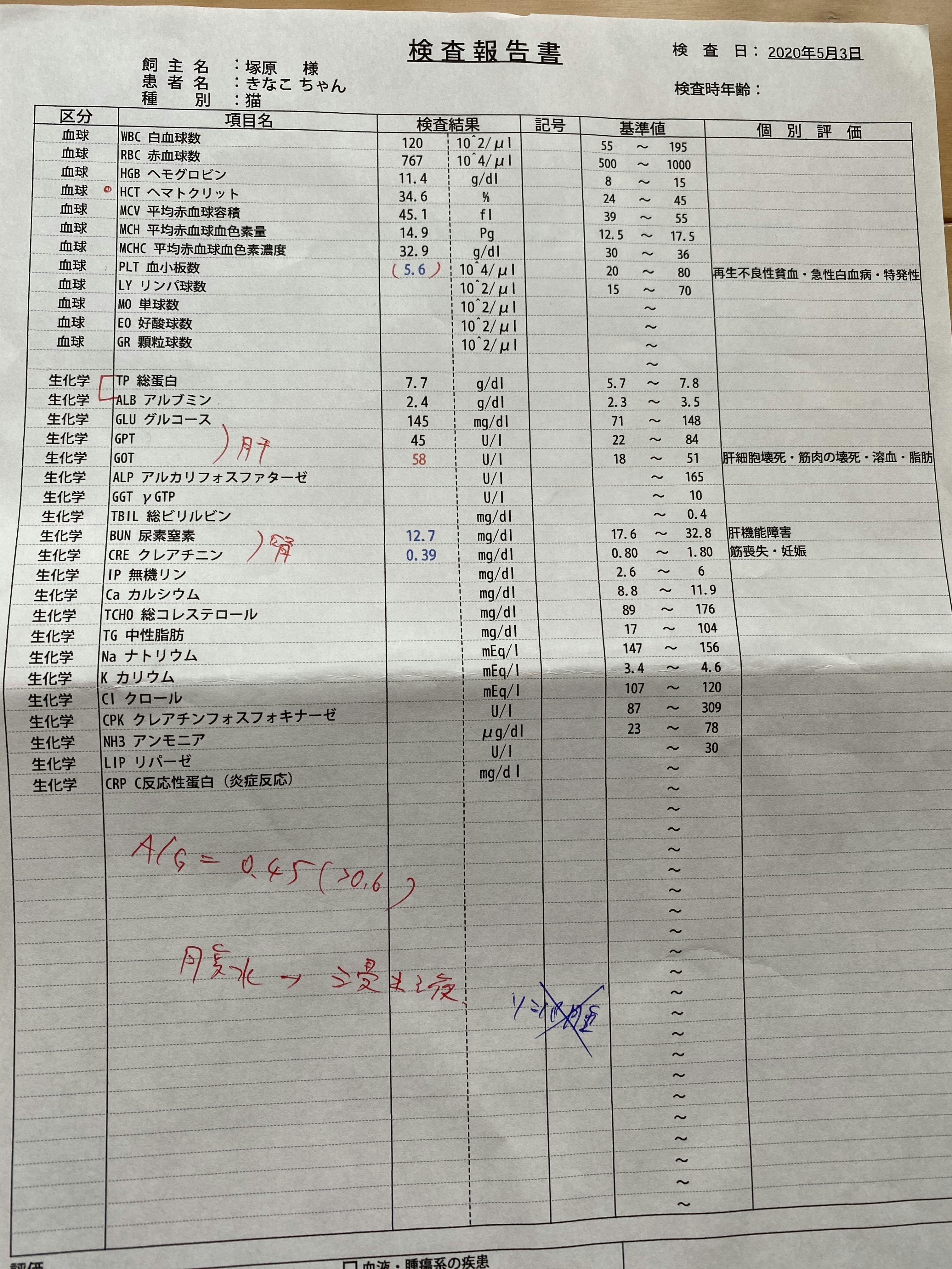 随時血液検査の報告、きなこの様子をご報告していきたいと思います。