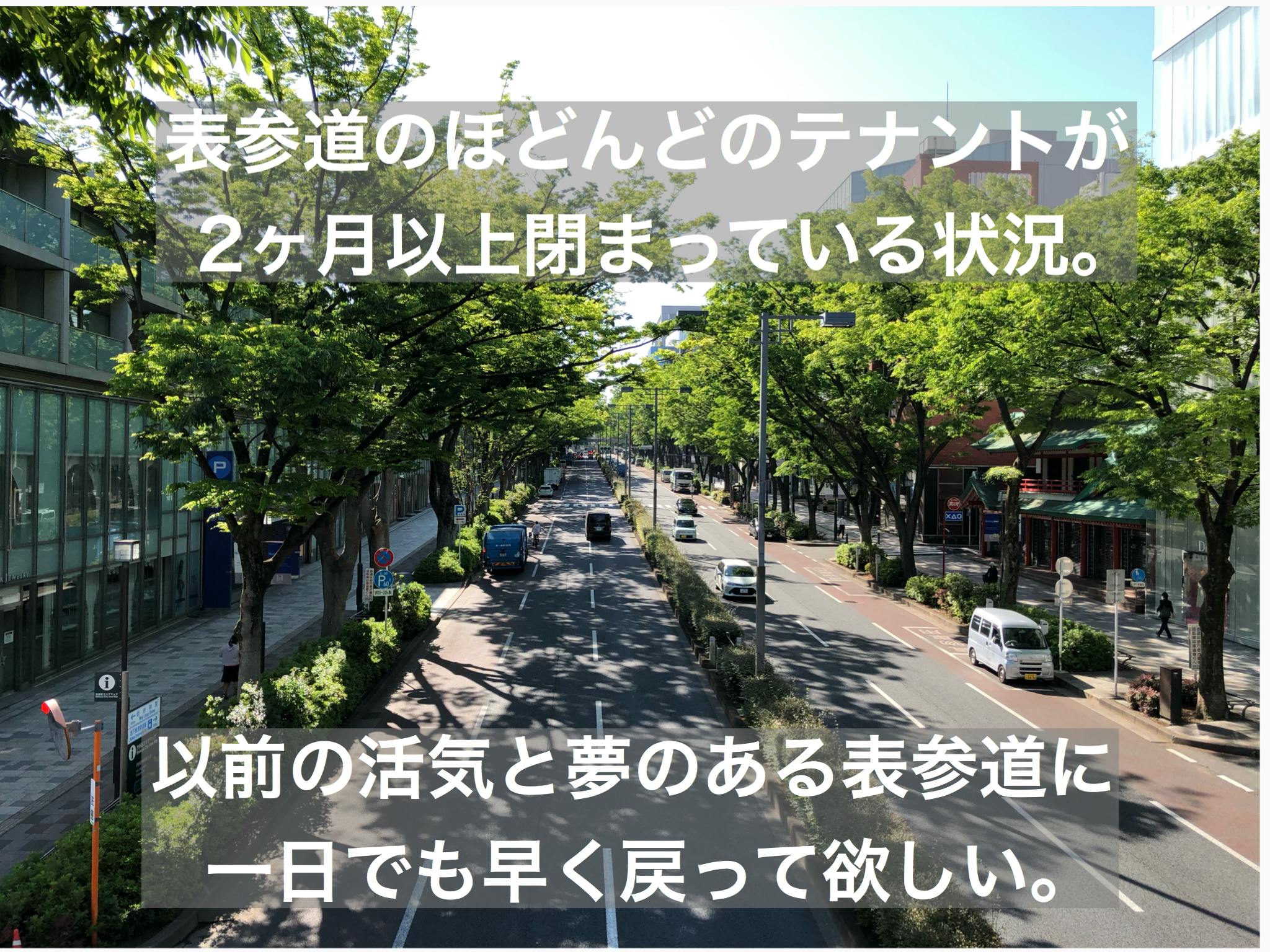 表参道はアパレルも飲食店もほとんどが4月から休業が続き周りの美容室もコロナウイルスによる感染被害によって休業や自粛を余儀なくされ、経営危機にさらされています。